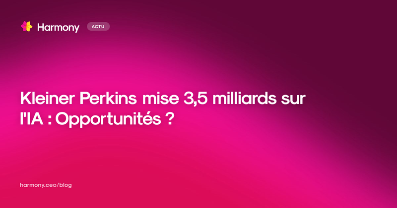 Kleiner Perkins injecte 3,5 milliards de dollars dans l'IA. Analyse des secteurs impactés et des opportunités pour les entrepreneurs. Et comment Harmony peut vous aider.